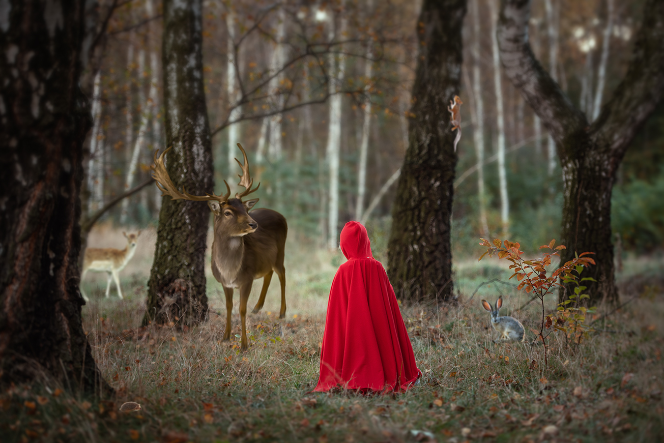Pewnego dnia jej wnuczka otrzymała od niej prezent- czerwony aksamitny kapturek, który dziewczynka polubiła tak bardzo,